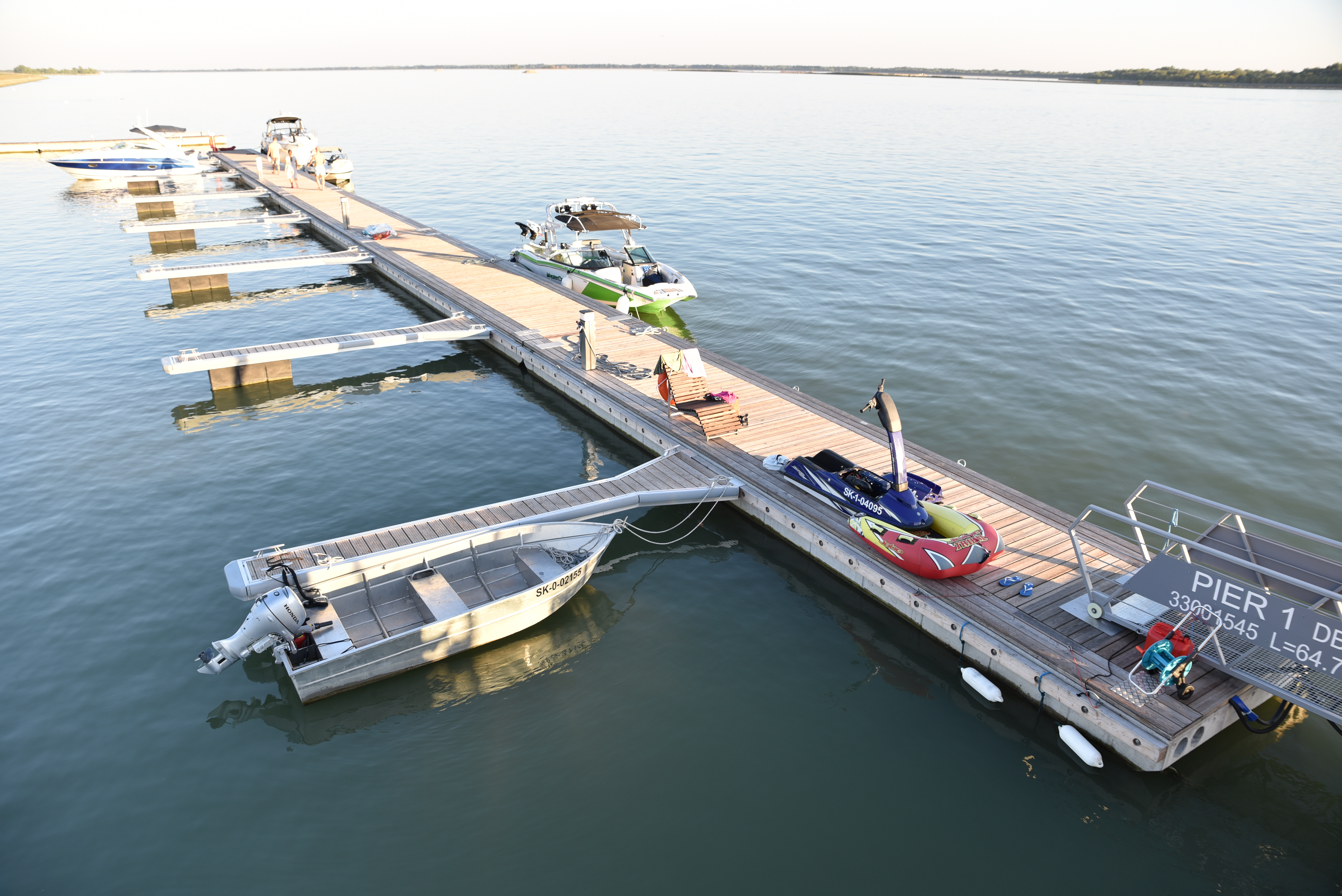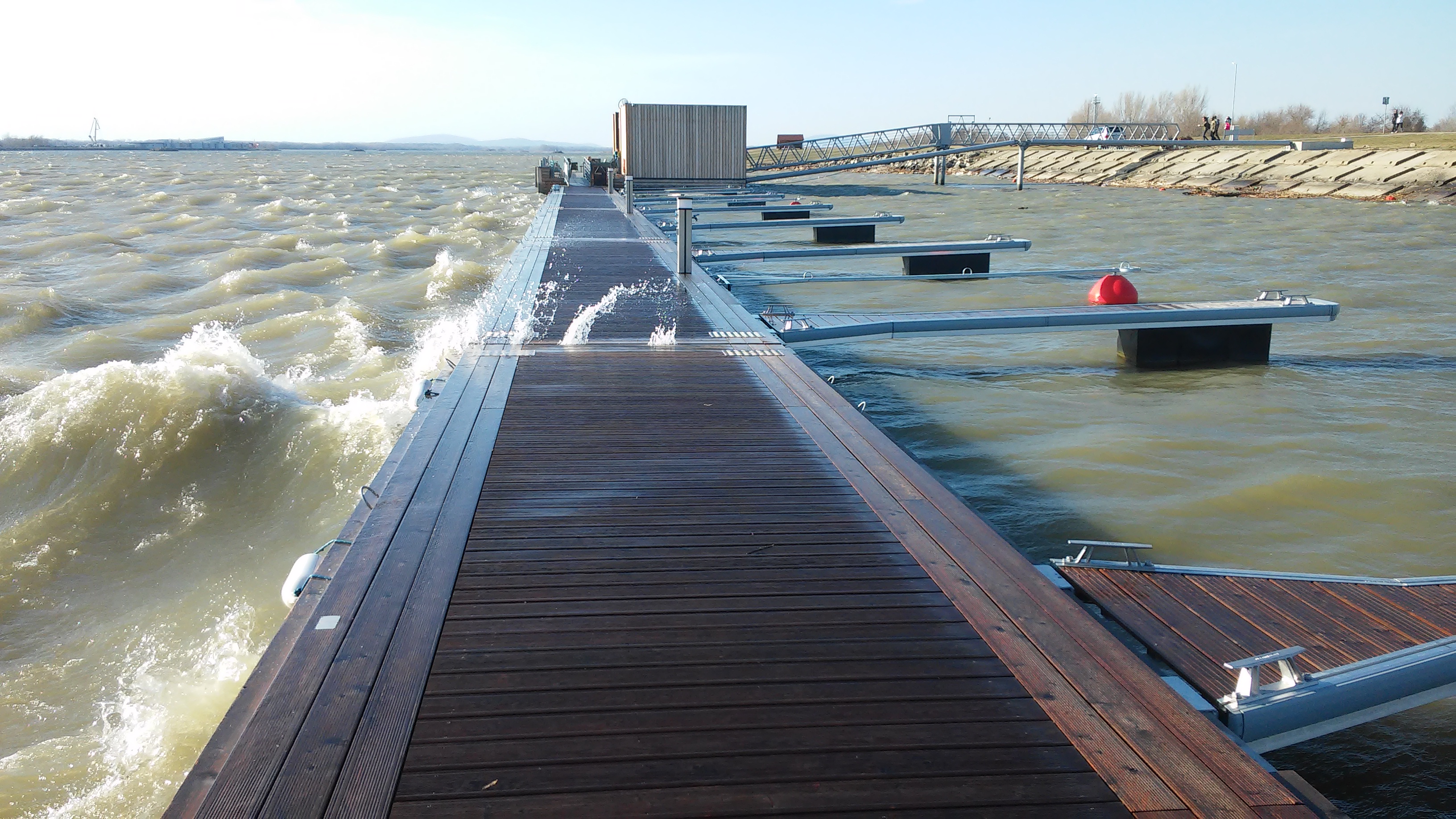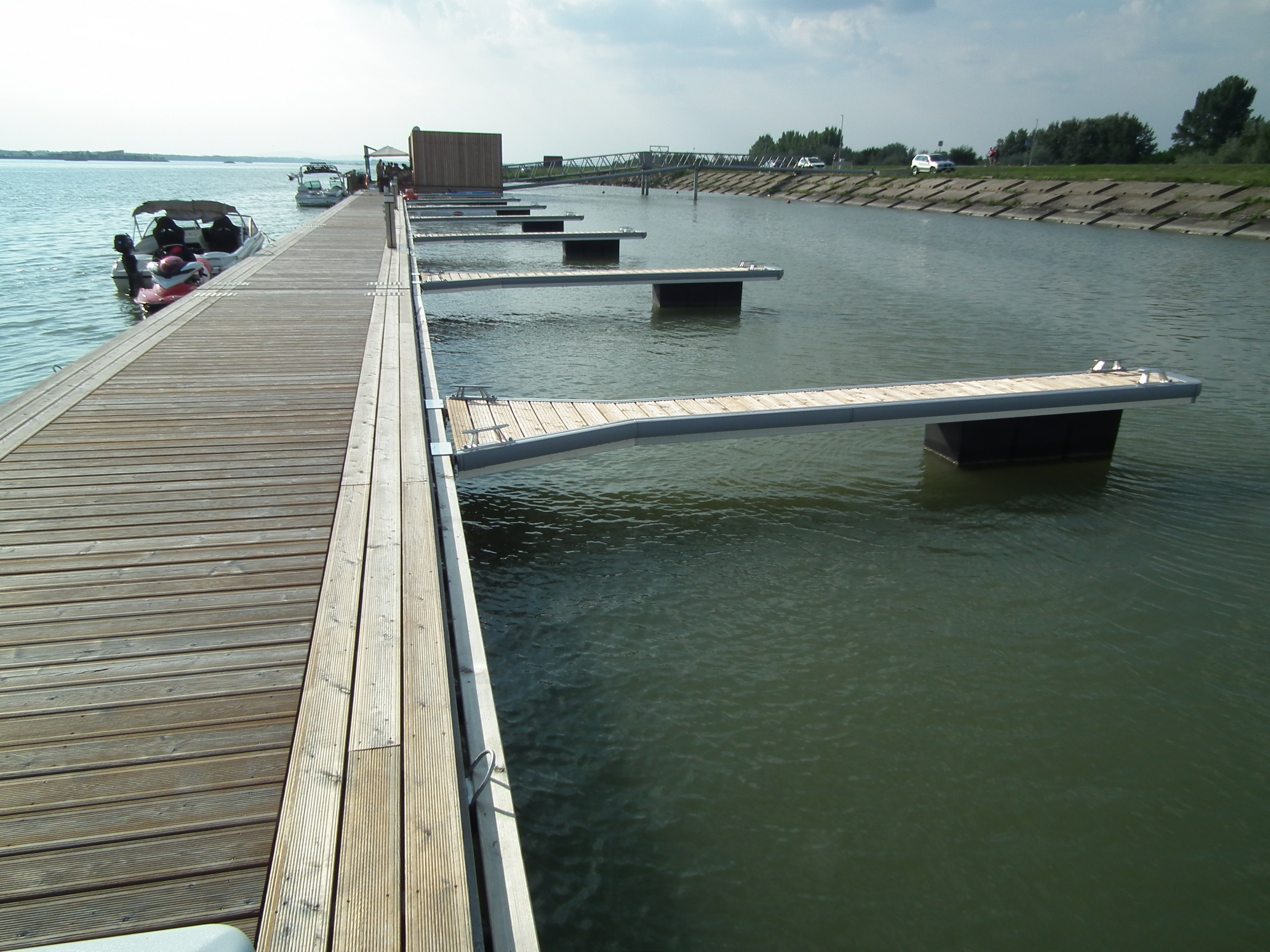 Prvá marina na Slovensku vyrobená zo železobetónových pontónov, ktoré zároveň slúžia ako vlnolamy a v konfigurácii do tvaru L vytvárajú umelú chránenú zátoku. Z nábrežnej strany sú pontóny vybavené vyväzovacími prstami pre trvalé kotvenie rekreačných plavidiel. Z návodnej strany sú pristávacie miesta pre dočasné vyviazania.